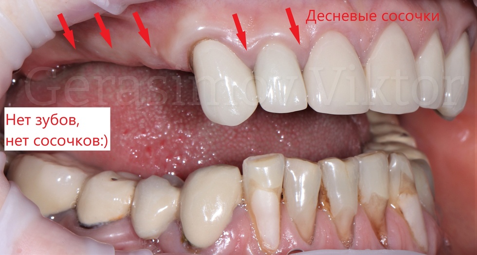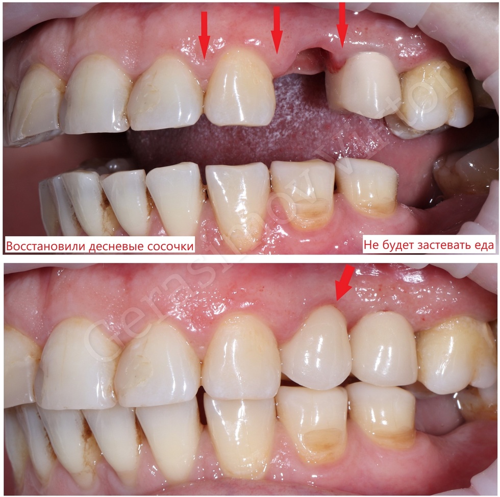 Если десны мало, то её надо нарастить, чтобы еда не лежала на коронках как на полке.