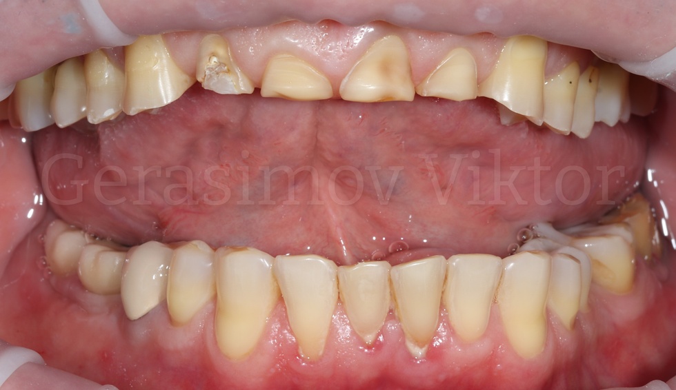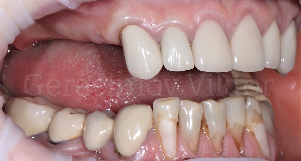 Этого зуба давно не было. Нижний вылез наверх. Сначала надо было поставить брекеты, выровнять зубы. Этот зуб опустить вниз. А потом ставить имплант и в конце делать этот зуб на имплант.