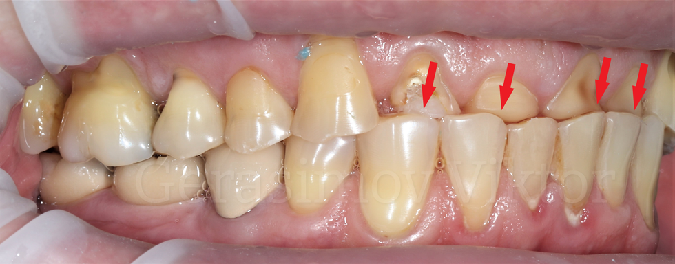 Пациенту удалили, например, несколько верхних правых боковых зубов.