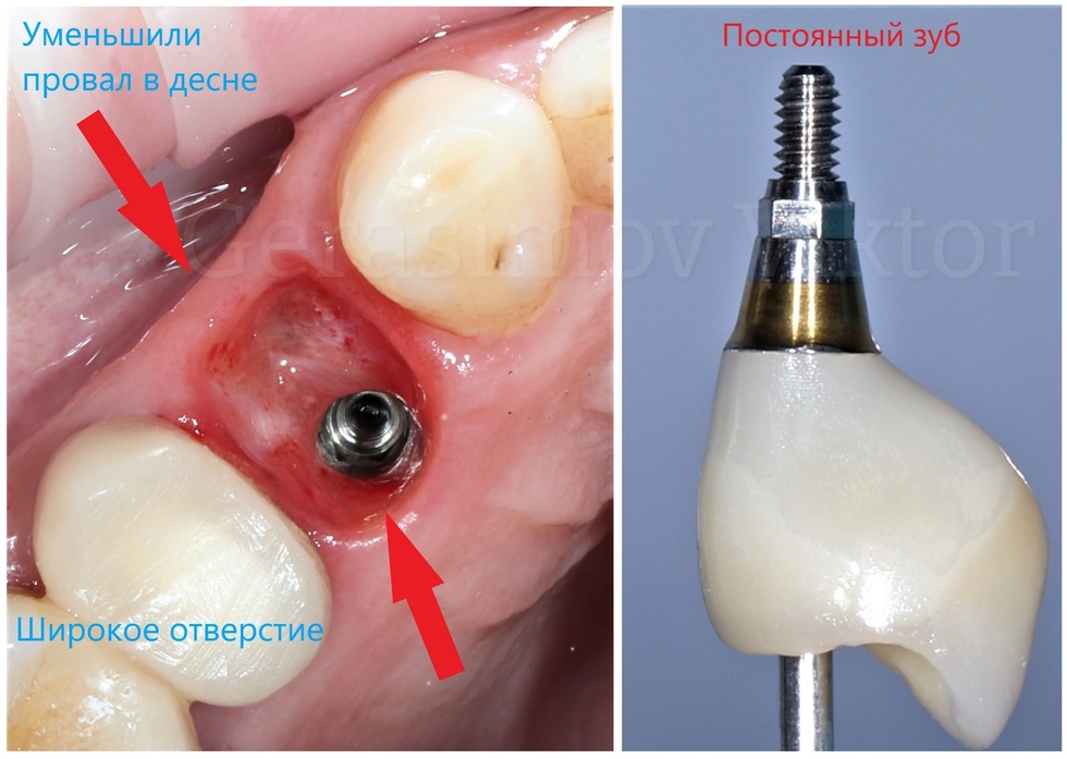 Например, у вас стоял имплант узкого диаметра на месте большого бокового зуба.
