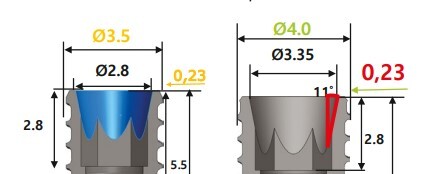 - размерами (длинами и диаметрами): большинство размеров имплантов у различных производителей схожи, но у некоторых есть короткие и узкие импланты, которых нет у других. А такие импланты порой дают возможность избежать наращиваний или вообще кроме них ничего другого нельзя поставить в принципе.