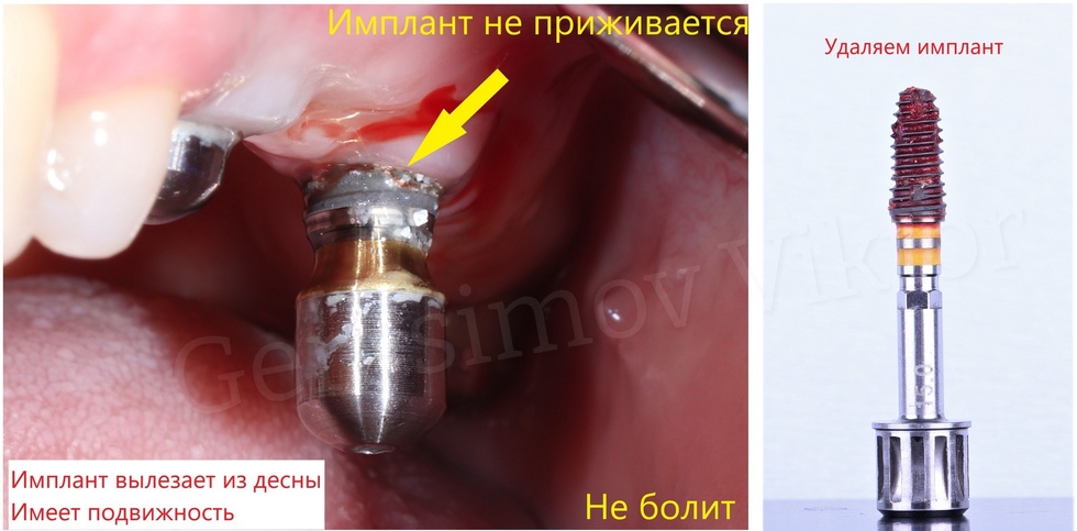НЕ ПАНИКОВАТЬ! Необходимо выкрутить имплант (это легко и не больно (с анестезией естественно), вычистить десну, подождать 3 месяца, сделать новый